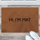 Ridicement drôle, "Salut, je suis Mat" sur un arrière - plan en faux cuir marron clair.