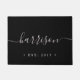 Un grand cadeau pour les jeunes mariés ou les nouveaux propriétaires, notre porte d'accueil personnalisée en noir chic et durable caractéristiques votre nom de famille ou nom de famille en typographie manuscrite, avec votre année établie en dessous.