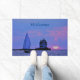 Accueillent les gens dans un port sûr, quand on navigue à bord pour une visite. Voilier et phare couché de soleil pittoresque sur tapis robuste de porte d'accueil.