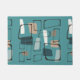 Un design d'art abstrait inspiré des motifs modernes du début du XXe siècle, avec des carrés géométriques déformés en vert turquoise et or, avec un arrière - plan turquoise.