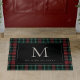 Ajoutez une touche festive à votre entrée grâce à cet élégant tapis à motifs écossais en rouge et vert de Noël. Personnalisez avec votre monogramme initial unique au centre, et votre nom de famille en dessous.