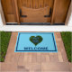 Texte bleu, "TERRE et COEUR sont épelés avec les mêmes lettres", superposé sur une feuille verte en forme de coeur. Une autre lecture de texte personnalisable, "WELCOME" apparaît également. Vous pouvez modifier la couleur de l'arrière - plan ainsi que les couleurs du texte et de la bordure.