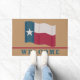 Montrez votre amour du Texas avec le matelas avec le drapeau rouge, blanc et bleu Lone Star sur un arrière - plan tan foncé. Le mot Bienvenue est en dessous d'une ligne rouge en bas. Coordination des produits disponibles.