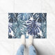 Paillasson Tropical Bleu Blanc Monstera Feuilles Modèle
