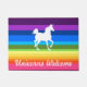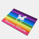 Bienvenue licornes à votre maison avec ce tapis de portes coloré amusant. Conception par Victoria Lynn Hall.