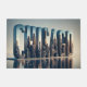 Une représentation stylisée de la ville de Chicago est encapsulée dans son nom, créant un effet de skyline dans les lettres et le reflet de l'eau du lac Michigan.