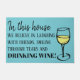 Conception drôle de nouveauté pour des buveurs de vin ! Caractéristiques de conception par verre de vin avec du vin blanc dans le coin droit inférieur. À la gauche du verre de vin est le texte dans diverses polices noires qui indique, dans cette maison que nous croyons qu'il faut rire avec des amis, souriant par les larmes et le vin potable ! Ce drôle, natte de buveurs de vin de nouveauté fait un grand cadeau de pendaison de crémaillère pour vos amis et famille de consommation de vin.