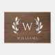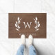 Wreath Wood Initial Monogramme Nom Doormat est un arrière - plan de bois de noyer brun, avec votre nom de famille et initiale.