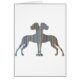 Zwei mal Dogge, zwei mal aus sehr vielen Farben. Doggensilhouetten en vielen Linien. Qu’elles soient placées sur un porte-manteau ou encadrées, ces cartes servent d’oeuvres miniatures d’art, célébrant la grandeur et la douceur de la Grande Danse d’une façon qui attire l’oeil et qui réchauffe le coeur.