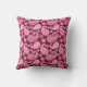 Drijf kussen in een paisleypatroon in tinten van bleek ijs roze tot fuchsia roze, met witte letters, op een diepgewortelde wijnachtergrond