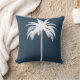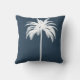 De elegante witte palmboom maakt deel uit van het bladerdak op de werpkussen. Elegant Tropisch design. De palmboom bevindt zich op een blauw achtergrond. De rug heeft het palmboompatroon. uitzicht het collectie via de verbinding op deze pagina,
