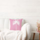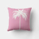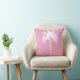 De elegante witte palmboom maakt deel uit van het bladerdak op de werpkussen. Elegant Tropisch design. De palmboom bevindt zich op een roze achtergrond. De rug heeft het palmboompatroon. uitzicht het collectie via de verbinding op deze pagina,
