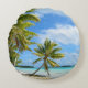 Gooi de kussens met een hangende palmboom op een wit zandstrand van een tropisch eiland in de Stille Oceaan dat behoort tot de Tahiti-archipel, Frans-Polynesië.