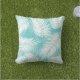Deze kussen in de buitenlucht worden getoond in een prachtig ontwerp van de tropische handpalmen. Kleurdiepgaande Aqua en witte palmen Pas dit object aan of koop het gewoon zoals het is. StockAfbeelding vecteezy.com