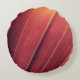 Het abstracte, roest- en goudkleurige kunstwerk op dit ronde accentkussen is gemaakt van een originele foto van ZoeSPEAK van zaagpalmschijfjes. De close-upfoto show de details van de bladeren met schimmige rondingen en gemarkeerde ribben waardoor diagonale banden over het ontwerp heen ontstaan.
