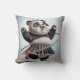 Een vrolijke panda met een boog en bloemen draait een kleurrijke hoelahoepel terwijl hij een kleine geplooide rok en zadelschoenen draagt.