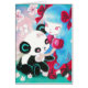 Een origineel fantasieschilderij in acryl's met de titel: "Panda Beer Paradise". Een schattig meisje uit kawaï, met lang felblauw haar, gekleed in een rijke rode jurk, met rode bogen in haar haar haar om mee te spelen. Ze kleeft zachtjes een zoet baby panda-beer, in een ongerepte, vreedzame tuin onder torenboombloesems.