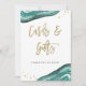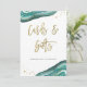 Cette enseigne élégante et moderne mariage "cartes & cadeaux" présente des pierres de géode turquoises à l'aquarelle, avec une typographie et des éclaboussures en faux or.