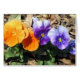 Au printemps, des pansies vibrantes de violet orange et bleu fleurissent à travers les feuilles d'automne tombées.