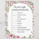 Baby shower spel "De prijs is goed" Raad de prijzen van deze baby essentials. Degene die het dichtst bij de echte waarde komt, wint. Het Baby shower Game-papierblad is voorzien van schattige waterverf-rozen.