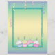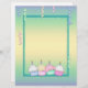 Papier à en-tête pour invitations d'anniversaire, célébrations, envois postaux d'entreprise, etc. Conception avec gâteaux et serpentins sur fond vert, bleu et jaune. Il suffit d'ajouter votre texte et de choisir votre finition de papier. D'autres produits sont disponibles dans cette conception.
