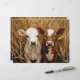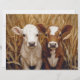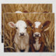 Une charmante représentation de deux veaux de vache curieux au milieu d'un grand champ de maïs doré sous un ciel bleu. Ce paysage agricole attachant apporte un sentiment de tranquillité et de chaleur rurale, parfait pour des projets à thème de campagne ou un décor de ferme confortable.