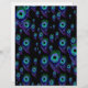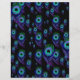 Papier noir profond avec plumes de paon flottantes de tailles différentes. Les bleus et les violets cool apparaissent contre le noir dans ce papier à scandale. Papier amusant pour scrapbooking ou autres objets, ou même comme papier d'emballage pour un petit paquet précieux.