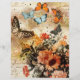 Papillons vintages en bleu et orange. Fleurs et vie plante. Avec grunge et arrière - plan de script éphémère.
