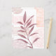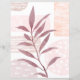 An abstract watercolor featuring patterned shapes and a botanical in a palette of maroon and soft calming colors.