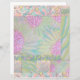 De belles fleurs sont représentées dans cette oeuvre d'art abstraite présentant diverses estampes et des motifs aux couleurs analogues, donnant un bel exemple de médias mixtes.