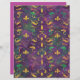 Ce papier à scandale présente un design animé et complexe, parfait pour une variété de projets créatifs, en particulier ceux qui ont un thème festif ou festif, comme Mardi Gras. Le devant du papier est orné d'un motif coloré sur un arrière - plan violet foncé, orné d'or brillant et de formes abstraites vertes qui rappellent les symboles traditionnels de Mardi Gras tels que les perles et la fleur de lis. Les tourbillons, les boucles et les éléments floraux stylisés créent une apparence dynamique et attrayante, ce qui en fait un excellent choix pour les artisans, les scrapbookers et do-it-yourself passionnés. Que vous conceviez des cartes de voeux, des invitations à des fêtes ou des accents décoratifs, ce papier ajoute une touche de dynamisme et d'élégance à vos créations. L'envers du papier est une couleur magenta solide, offrant un cadre audacieux et complémentaire qui améliore l'esthétique globale et offre une polyvalence dans vos efforts d'artisanat.