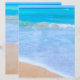 Papier scrapbook de scène de plage avec image sur les deux côtés du papier 8,5 x 11 pouces. Eau de mer bleue tropicale et limpide et petites vagues qui s'élèvent sur la plage. Chaque côté est un peu différent. Choisissez le type de papier que vous préférez.