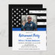 Ligne Bleue Mince Police Graduation Invitations ou Police Retraite Party Invitations. Célébrez des années de service dévoué, ou célébrez votre nouveau diplômé de l'académie de police, amis invitations et la famille à votre parti d'application de la loi avec cette Mince Ligne Bleue Drapeau de la retraite de police Invitation et de la police Invitation de diplôme de l'académie de police - Etats-Unis Drapeau américain dans les couleurs du drapeau de la police, conception en détresse. Cette invitation à la retraite des policiers est également parfaite pour les invitations à l'obtention d'un diplôme d'académie de police, lieu de changement dans la personnalisation. Consultez notre collection pour les cadeaux de retraite de la police, les cadeaux de fin d'études de la police, les faveurs de la fête et les fournitures. DROIT D'AUTEUR © 2021 Judy Burrows, Black Dog Art - Tous droits réservés. Agent de police du budget Invitation à la retraite