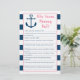 Ces adorable Who Knows Mommy Best Cards sont une activité de Baby shower amusante. Il vous suffit de les faire circuler pendant le Baby shower où vous pourrez vous amuser en répondant aux questions sur la maman à être ! La personne qui a le mieux gagné ! Cette adorable conception nautique dispose d'une jolie ancre avec embellissement cardiaque.