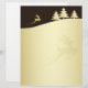 Illustration de Noël en or élégante avec une silhouette dorée d'un renne et d'un arbre avec un joyeux accueil de Noël sur un arrière - plan marron.