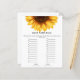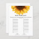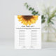 Préparez-vous à vous amuser avec notre jeu de Baby shower de course de Sunflower de l'automne pour bébé, une activité délicieuse pour votre célébration! Dans ce jeu, les invités courent contre l'horloge pour trouver autant de noms de bébé par alphabet dans l'heure allouée. Celui qui a le plus de noms gagne un doux prix ! Conçu avec un charmant gros tournesol, ce jeu ajoute une touche de douceur à vos festivités de baby shower. Il est parfait pour divertir et fidéliser les clients tout en célébrant l'arrivée de votre petit. Que vous soyez l'hôte d'un petit rassemblement ou d'une grande fête, tout le monde appréciera de participer à ce jeu amusant et passionnant. Avec notre jeu de Baby shower de course pour le tournesol automnal Floral Baby Name, vous pouvez ajouter une touche de plaisir et de rire à votre célébration tout en créant des souvenirs durables avec vos proches. Que la course commence !