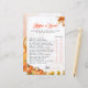 Add an exciting twist to your baby shower with this captivating Fall-themed 'Higher or Lower?' game card! Featuring a beautiful watercolor design of plump pumpkins and delicate autumn leaves, accented with subtle golden speckles, this game card perfectly blends with your seasonal decor. Guests will have a blast guessing whether the answers to fun facts about the parents-to-be are 'Higher' or 'Lower' than the given numbers. It's a fantastic icebreaker and a source of laughter and friendly competition for all attendees. Easily incorporate any specific event details or customized statements to make this game uniquely yours. Ideal for autumn baby showers, rustic gatherings, or harvest-inspired parties, ensuring everyone has a delightful and interactive time.