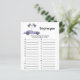 Carte d'invitation baby shower à thème de voiture de course avec des illustrations aquarelles d'une voiture vintage violet (violet) et drapeau noir - blanc. "Course pour un baby shower."