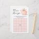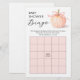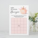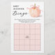 Un citrouille mignon attaché avec un ruban rose décore ces cartes de jeu de Baby shower Bingo. CORRESPONDANCE d'objets dans notre collection.