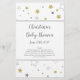 Cette carte de baby shower "Animal Gestation" pour une future maman dispose d'une police moderne script sur l'arrière - plan des étoiles d'or gris, parfait pour un baby shower révélateur de genre! À l'envers avec la clé de réponse !