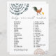 Baby shower match spel met illustratie van baby chick met mama hen en boho design in de hoeken. Pas de diernamen aan de babynamen aan.