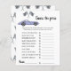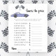 Carte d'invitation baby shower à thème de voiture de course avec des illustrations aquarelles d'une voiture vintage violet (violet) et drapeau noir - blanc. "Course pour un baby shower."