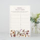 These Wildflower Baby Shower Game combines elegance and charm. It features hand-painted watercolor wildflowers in rich hues of burgundy, gold, cream, and purple, highlighted by lush greenery. Suitable for any season, these wildflowers are arranged in a stunning side bouquet, providing a modern and fresh feel. With a burgundy pattern on the back, this game card offers versatility and sophistication, making it a fun and stylish activity for your baby shower guests.