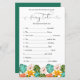 Devinez la carte de jeu baby shower Fairy Tale est une façon unique et amusante de divertir les invités à votre prochain baby shower d'été ou de plage. La carte présente de jolis feuilles tropicaux avec de jolies fleurs. Les clients aimeront essayer de deviner correctement le titre de chaque conte de fées.