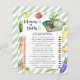 "Un bébé local est en route". Célébrez avec cette fête de baby shower à thème potager d'aquarelle ! Aquarelle concombre, oignon, aubergine, courgettes, tomates jaunes et rouges, radis, carottes, poivre chaud, poivre jaune doux, pois et chou, brocoli et betterave sur une planche à découper. Aquarelle de récolte biologique.