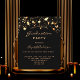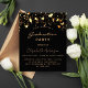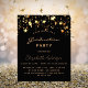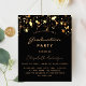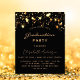 Une carte d'invitation glamour pour une fête de remise de diplômes 2025 (ou toute année) pour lui et elle. Un arrière - plan noir décoré de faux étoiles dorées. Personnalisez et ajoutez un nom et des détails du parti. Le texte Graduation et le nom sont écrits avec un script de style à la main moderne. Texte de couleur dorée. Retour : noir arrière - plan et étoiles d'or.