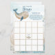 Baby shower Bingo Fiche de jeu, avec des instructions personnalisées de jeu - devinez l'activité de jeu à jouer à votre baby shower. Aquarelle naturelle et douce en bleu et beige avec baleines, poissons et coraux sous la mer. Le lettrage en gros et le style boho, parfait pour le baby shower de baleines, le baby shower nautique, sous les thèmes de la mer et des animaux de l'océan. Pour coordonner les invitations, la papeterie, les jeux et la décoration de jour de l'événement, veuillez consulter ma Collection de Baby showers de baleines ou m'envoyer un message pour ajouter des articles supplémentaires dont vous avez besoin.