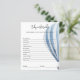 Invitations amis et famille à partager la joie de l'arrivée de votre petit avec ce baby shower, avec une montgolfière bleu aquarelle. Éléments correspondants disponibles. Réponses : CRAVINGS, PLEIN, PACIFICATEUR, BOUTEILLE, LUMIÈRE NOCTURNE, LULLABY, STROLLER, ÉPIDURAL, BRÛLE, CHAISE HAUTE, SAC DE DIAPER, ÉPONSE