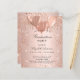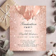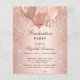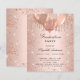Un arrière - plan rose à l'apparence métallique. Décoré d'or rose, de gouttes de parties scintillant rose, de la peinture goutte à goutte et des ballons. Personnalisez et ajoutez un nom et des détails du parti. Le nom est écrit avec un script de style manuscrit