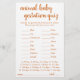 Le baby shower ou le sexe du quiz gestationnel de grossesse animal révèle un jeu de fête (avec les réponses ci-dessous) présentant un script décontracté et amusant. CLÉ DE RÉPONSE : Cochon 122, Kangaroo 37, Cheval 336, Cat 63, Lapin 33, Elephant 645, Canard 28, Mouton 148, Vache 284, Baleine 360, Lion 108, Chien-63, Souris-20, Giraffe-419, Ours-220, Chimpanzé-243, Chèvre-150 Pour d'autres couleurs ou des produits correspondants, visitez le magasin JustFharryn Zazzle, ou contactez le designer, c/o Fharryn@yahoo.com Tous droits réservés. #zazzlemade